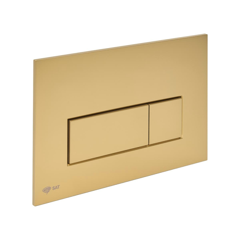 Ovládací tlačítko plast zlatá s matným povrchem. Pro předstěnové instalační systémy a WC nádrže pro zazdění SAT. Tlačítko minimálně vystupuje nad obklad díky tlouštce pouhých 5,5 mm. Dvoučinné mechanické splachování. Povrchová úprava: GOLD-mat. Materiál: plast