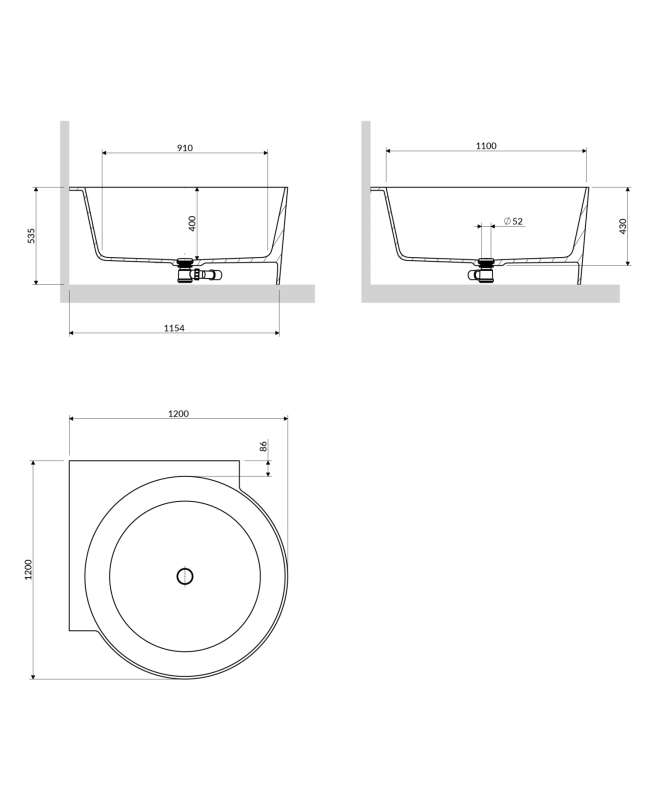 OVO M+ wanna narożna okrągła, 120 x 120 cm, midnight blue mat