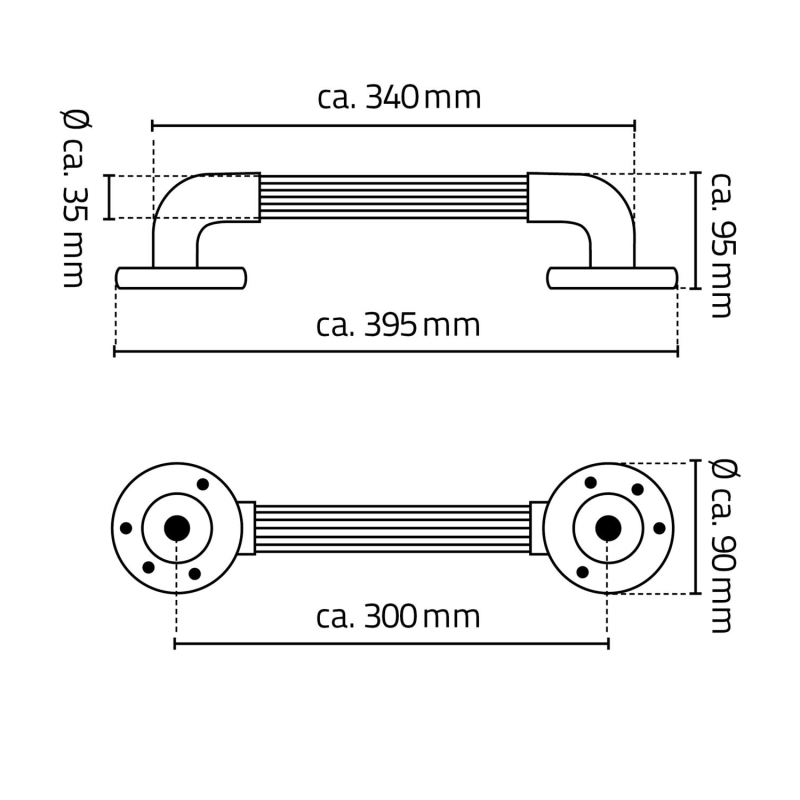 Pevnostní madlo plastové, 300mm, chrom