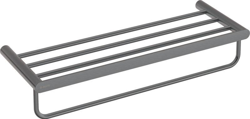 Półka żeberkowa wykonana ze stali została zaprojektowana z myślą o wygodnym przechowywaniu oraz suszeniu ręczników. Jej nowoczesna, minimalistyczna forma doskonale wpisuje się w eleganckie aranżacje łazienkowe, a matowe wykończenie w kolorze titanium podkreśla jej elegancki, nowoczesny charakter. Górna część półki składa się z kilku równoległych prętów, które tworzą stabilną powierzchnię do przechowywania złożonych ręczników lub innych tekstyliów łazienkowych. Dolny reling pełni funkcję praktycznego wieszaka, umożliwiając wygodne rozwieszenie ręcznika do suszenia. Solidna stalowa konstrukcja gwarantuje trwałość oraz odporność na wilgoć, dzięki czemu półka doskonale sprawdza się w codziennym użytkowaniu w łazience.