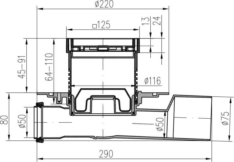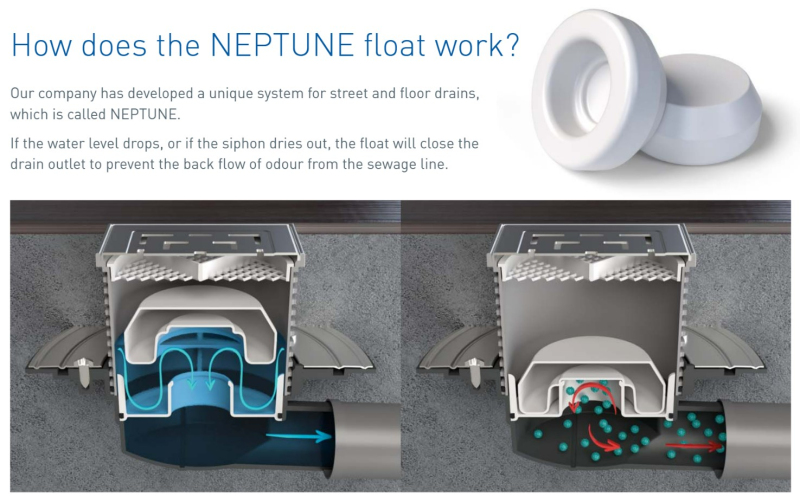 Podlahová vpusť průběžná D50/75 NEPTUN, nerez rámeček, mřížka STEEL S 427 A X