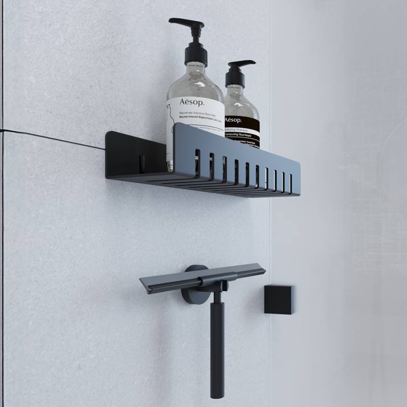 Černá koupelnová police je ideální do sprchového koutu nebo k vaně bez nutnosti vrtání. Polička je vyrobena z nerezavějícího kovu s matnou černou úpravou. Zvednutá čelní strana poličky omezuje vypadávání uložených věcí. Uprostřed této poličky je vyfrézovaný otvor pro odkapávání vody zpět do sprchy. Jednoduchá montáž lepením, bez vrtání. Lepidlo MAMUT není součástí balení výrobku. Lze jej dokoupit pod artiklovým číslem 35003TU. Nosnost poličky 4 kg.