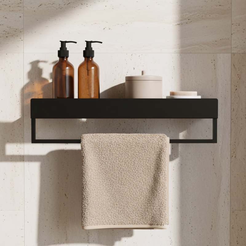 REA Rovná police do koupelny SF01 45cm černá matná REA-06000