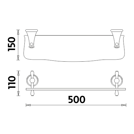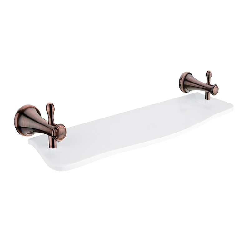 Polička z bílého umělého kamene. Délka 50cm. Úchyty mosaz s povrchovou úpravou staroměď.