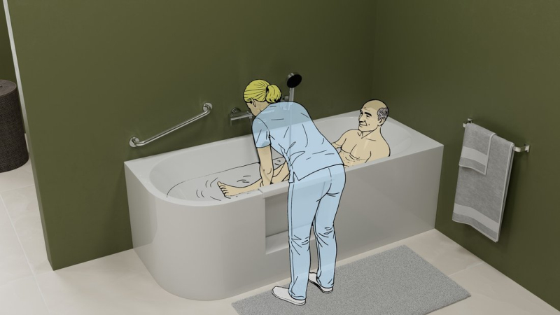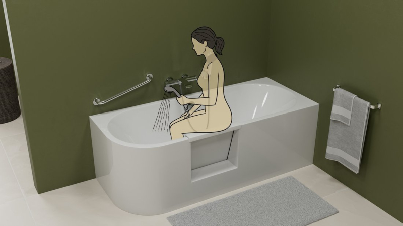 Elegantní vana poskytuje uživatelský komfort a bezbariérový vstup díky odnímatelným magnetickým dvířkům.