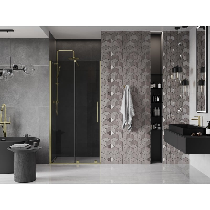 Posuvné sprchové dveře Mexen Velar 110 cm, grafit, kartáčované zlato - 871-110-000-41-55
