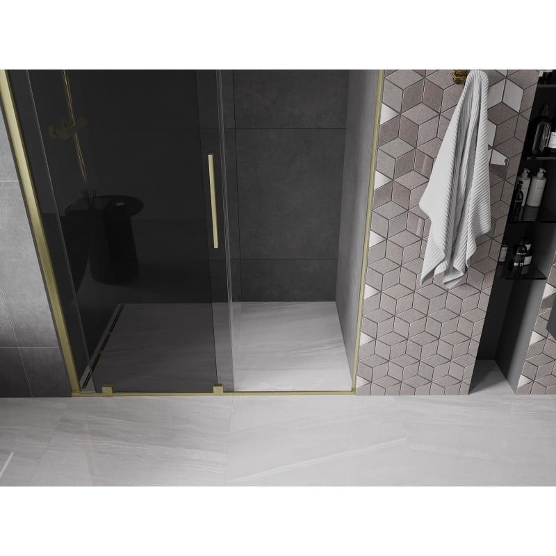 Posuvné sprchové dveře Mexen Velar 140 cm, grafit, kartáčované zlato - 871-140-000-41-55