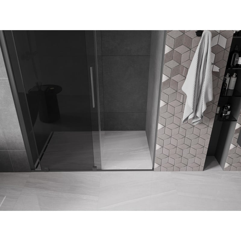 Posuvné sprchové dveře Mexen Velar 160 cm, grafit, stříbrná - 871-160-000-41-95