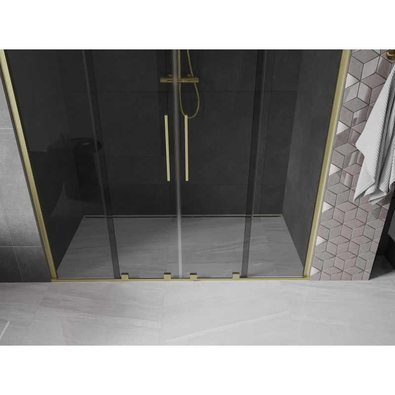 Posuvné sprchové dveře Mexen Velar Duo 200 cm, grafit, kartáčované zlato - 871-200-000-42-55