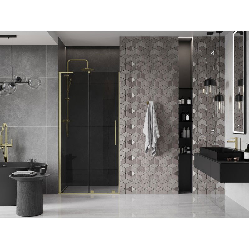 Posuvné sprchové dveře Mexen Velar L 110 cm, grafit, kartáčované zlato - 871-110-003-41-55
