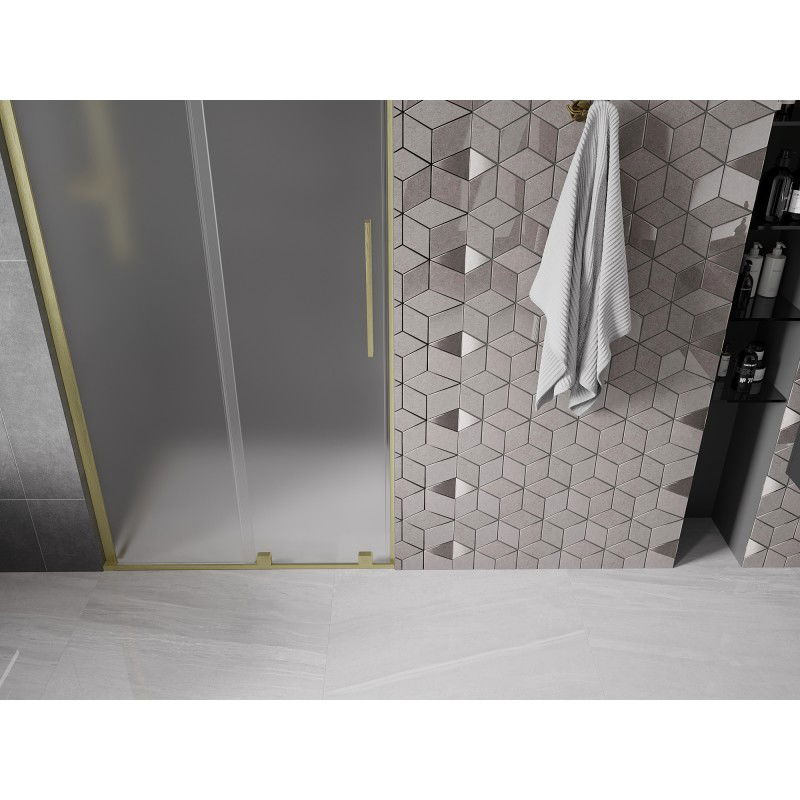 Specifikace produktu: Rozměr: 90x200 cm Montáž: Univerzální Vchod: Posuvný Barva skla: Mléčná Povrchová úprava: Kartáčované zlato Typ skla: Tvrzené Tloušťka skla: 8 mm Profil: Hliník Stabilizátor úhlu L: Nerezová ocel Povlak pro snadné čištění Vyrovnání nerovností stěny Nastavení šířky Možnost montáže na sprchovou vaničku nebo obklady Nerezová rukojeť Sada těsnění pro odvod vody Těsnění hliníkového prahu pro dveře