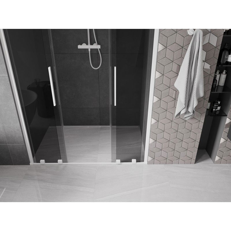 Specifikace produktu: Rozměr: 140x200 cm Montáž: Univerzální Vchod: Posuvný Barva skla: Grafit Typ skla: Tvrzené Tloušťka skla: 8 mm Profil: Hliník Povrchová úprava: Bílá Stabilizátor úhlu L: Nerezová ocel Povlak pro snadné čištění Vyrovnání nerovností stěny Nastavení šířky Možnost montáže na sprchovou vaničku nebo obklady Nerezová klika Sada těsnění pro odvod vody Těsnění hliníkového prahu pro dveře