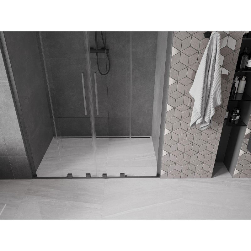Posuvné sprchové dveře Mexen Velar L Duo 150 cm, průhledné, kartáčovaná pistolově šedá - 871-150-003-02-66