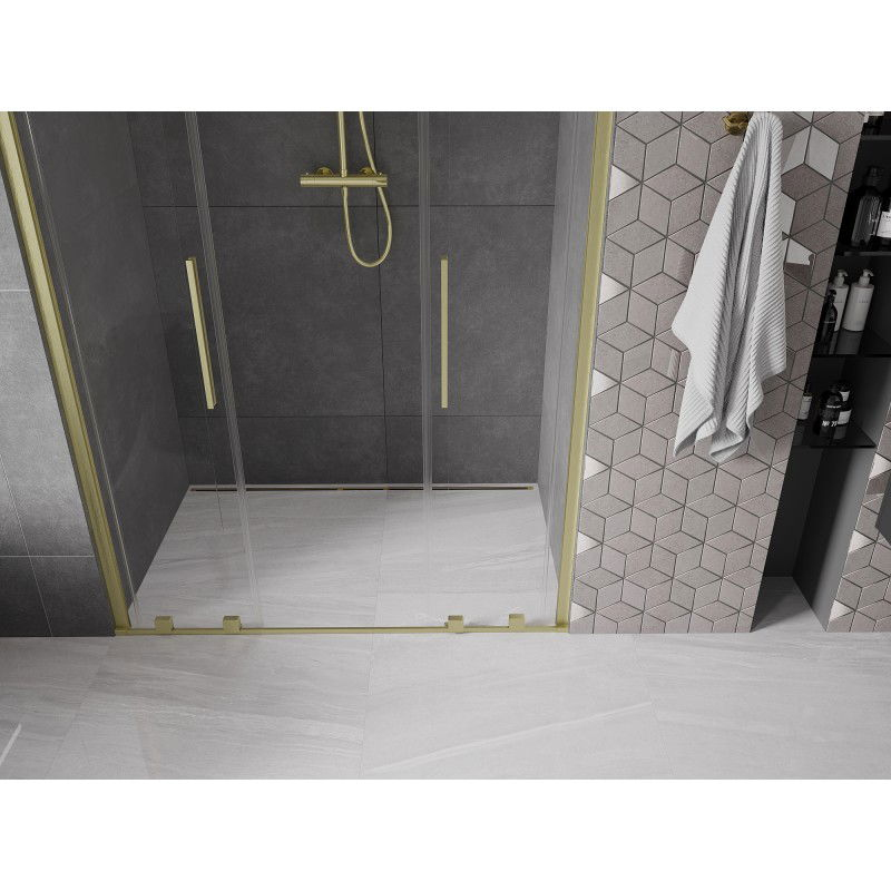 Posuvné sprchové dveře Mexen Velar L Duo 150 cm, průhledné, kartáčované zlato - 871-150-003-02-55