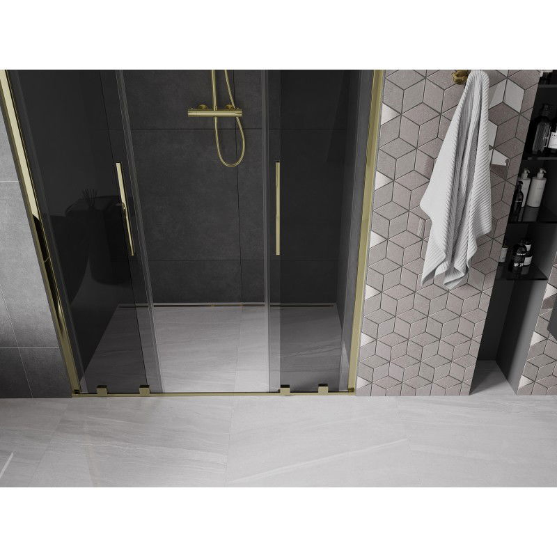 Posuvné sprchové dveře Mexen Velar L Duo 160 cm, grafit, zlato - 871-160-003-42-50