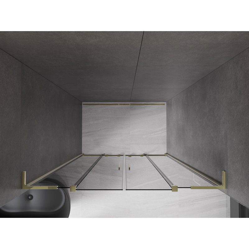 Specifikace produktu: Rozměr: 160x200 cm Montáž: Univerzální Vchod: Posuvný Barva skla: Grafit Typ skla: Tvrzené Tloušťka skla: 8 mm Profil: Hliník Povrchová úprava: Zlatá Stabilizátor úhlu L: Nerezová ocel Povlak pro snadné čištění Vyrovnání nerovností stěny Nastavení šířky Možnost montáže na sprchovou vaničku nebo obklady Nerezová klika Sada těsnění pro odvod vody Hliníkový práh pro těsnění dveří