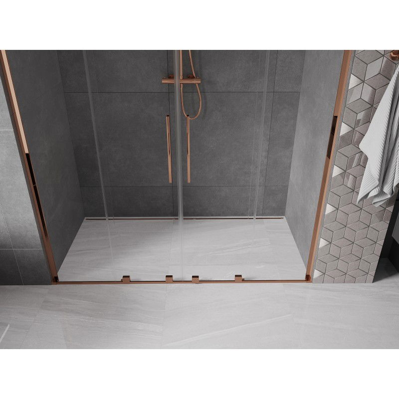 Posuvné sprchové dveře Mexen Velar L Duo 200 cm, průhledné, růžové zlato - 871-200-003-02-60