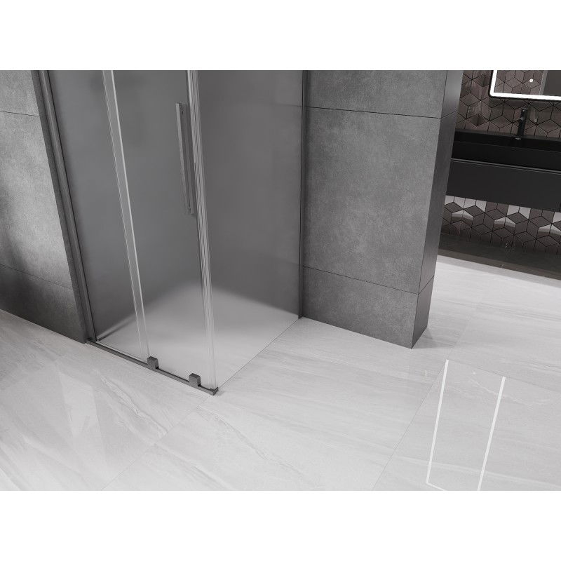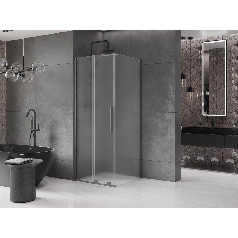 Specifikace produktu: Rozměr: 110x110 cm (dveře 110 cm, stěna 110 cm) Výška: 200 cm Montáž: Univerzální Vstup: Posuvné dveře Barva skla: Mléčná Povrchová úprava: Kartáčovaná šedá Typ skla: Tvrzené Tloušťka skla: 8 mm Profil: Hliník Povlak pro snadné čištění Vyrovnání nerovností stěny Nastavení šířky Možnost montáže na sprchovou vaničku nebo obklady Jednoduché válečky nejvyšší kvality Nerezová rukojeť Sada těsnění pro odvod vody Hliníkový práh těsnění dveří