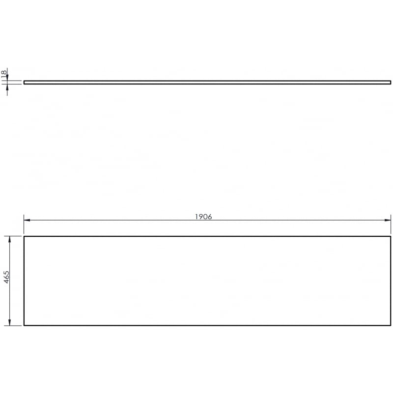 Specifikace produktu: Šířka: 190,6 cm Hloubka: 46,5 cm Tloušťka: 1,8 cm Barva: Matně šedá Materiál: Lakovaná MDF deska Povrch odolný vůči UV záření Ideální jako podstavec pro umyvadla na desku