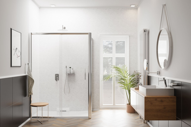 Przyłącze kątowe z zestawem prysznicowym z półką