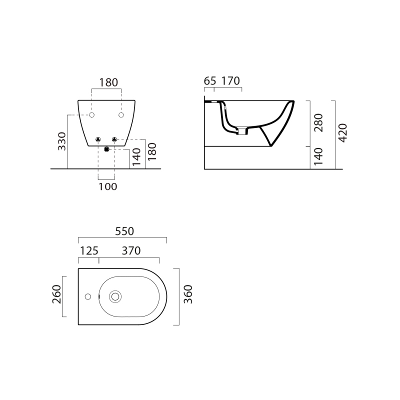 PURA ECO bidet závěsný, 36x55cm, černá mat