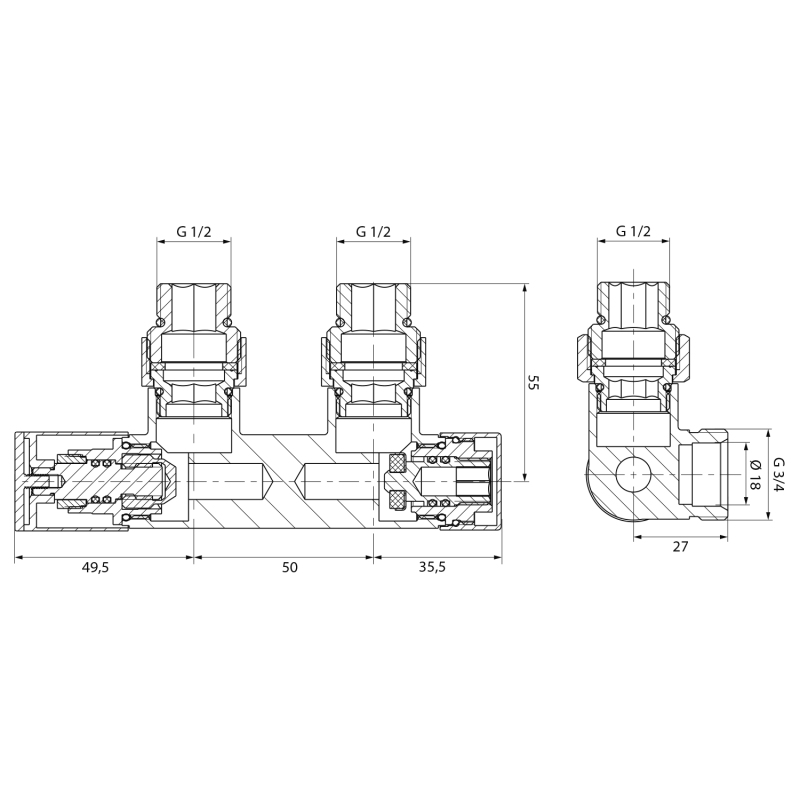 R-START připojovací sada ventilů pro středové připojení, bílá