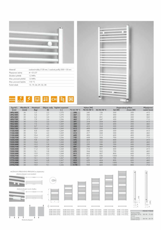 Radiátor kombinovaný v chromovém provedení. Rozměr radiátoru 75x93,5 cm.