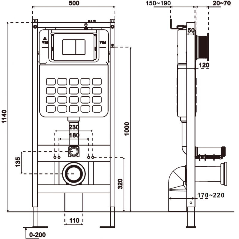 Specifikace produktu: Výška: 114 cm Šířka: 50 cm Tloušťka: 12 cm Verze SLIM Pneumatické splachování Pro instalaci do pevné zdi nebo sádrokartonové stěny Pro závěsnou toaletu s roztečí otvorů 18 cm nebo 23 cm Pro instalaci na podlahu s tloušťkou podlahy 0-20 cm Pozinkované nohy, nastavitelné od 0 do 20 cm Pozinkované konzole, nastavitelné od 150 do 190 mm Nádrž s antikondenzační izolací Možnost nastavení objemu splachování: 6/9 l, 3/4,5 l