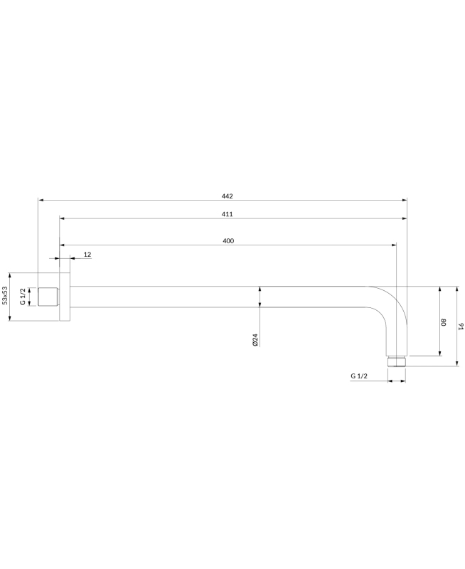 Omnires — nástěnné sprchové rameno, 40 cm, chrom lesk RA01K-XCR