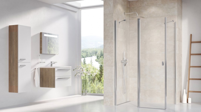 Pevná stěna Chrome v provedení matný chrom a s výplní z čirého skla s ochrannou vrstvou Ravak AntiCalc®. Otočitelný výrobek pro levou i pravou variantu.