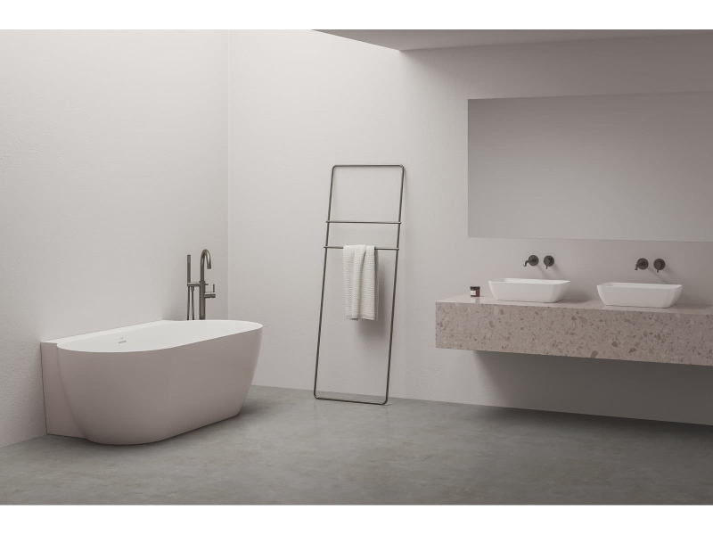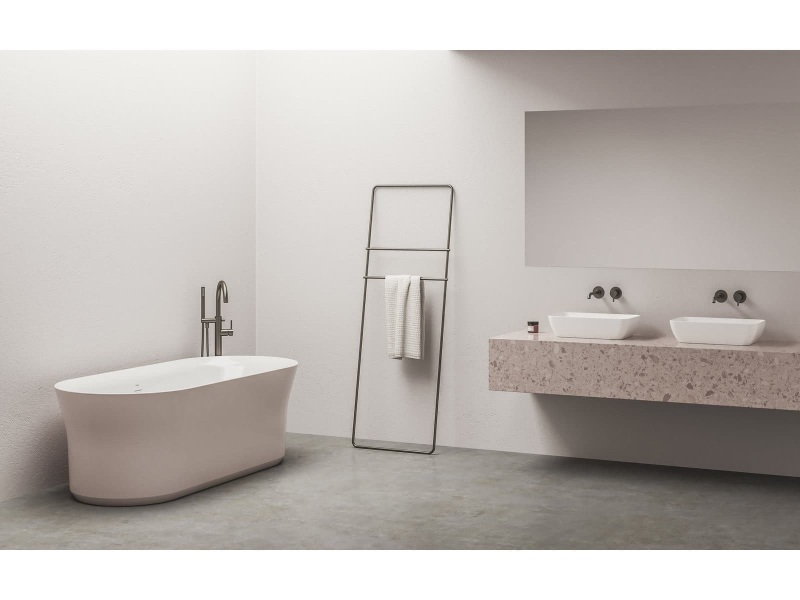 Vanová baterie do podlahy Espirit se sprchovým setem, určená pro R-box. V provedení Graphite Brushed.
