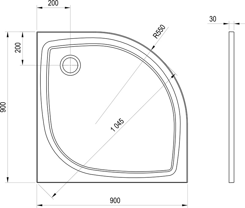 vanička + BASE + SET: s nožičkami a čelním krycím panelem Elipso Pro-90 R550 SET - hloubka vaničky: 1,5 cm