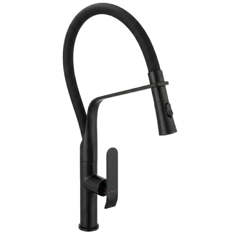Základem každé funkční kuchyně je správná kuchyňská baterie. Mosazné tělo tohoto výrobku je zárukou odolnosti a stability baterie. Povrchová úprava dodává baterii odolnost proti znečištění a lakování v černé matné barvě nevšední vzhled, který bude dokonale ladit s dekorem vaší kuchyně. Dlouhodobou spolehlivost zaručuje použití keramické kartuše. Ohnutý výtok umožňuje nasměrovat proud na libovolné místo. Na špičce výtoku je přepínač, který umožňuje volit mezi rozptýleným proudem a koncentrovaným proudem. Montážní návod