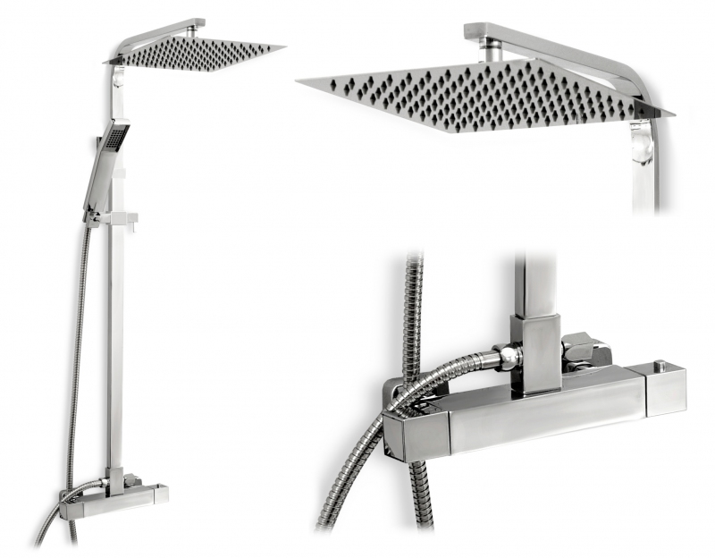 Sprchový termostatický set, který je navržen pro Vaše největší pohodlí a dokonalý design. Díky speciální fázi výroby bateriový set zaručuje maximální bezpečnost a komfort při každodenním používání. Jedinečný design a vysoká kvalita použitých materiálů zaručují odolnost a vysokou spolehlivost po mnoho let. Moderní, designovaný a díky nezvyklým tvarům krásný sprchový set série Rea Fenix Mialn obsahuje termostatickou baterii, která je vyrobena z vysoce kvalitní mosazi s úpravou v chromovém provedení. Lakování baterie bylo provedeno celkem ve třech vrstvách a díky tomu je baterie odolná vůči korozi a ztrátě barvy. Další dílčí prvky (bodový systém, tyč, hlavice, ruční hlavice, hadice) jsou vyrobeny z prvotřídních materiálu odolných vůči poškození rovněž v chromovém provedení.