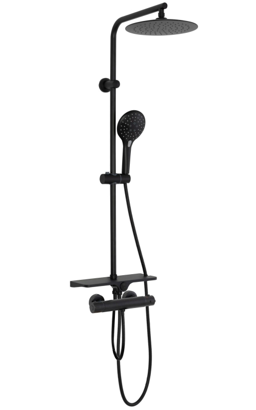 Sprchová sada s termostatem byla navržena za účelem dosažení Vašeho maximálního pohodlí a jedinečného designu. Vysoká kvalita použitých materiálů zaručují odolnost a vysokou spolehlivost po mnoho let. Moderní, designérská sprchová sada s neobyčejnými tvary série Rea Mike obsahuje termostatickou baterii, vyrobenou z mosazi vysoké kvality, v černém matném provedení. Lakování baterie bylo provedeno ve třech vrstvách, díky čemuž je baterie odolná vůči korozi a ztrátě barvy. Další dílčí prvky jsou vyrobeny z prvotřídních materiálů odolných vůči poškození rovněž v černém matném provedení.