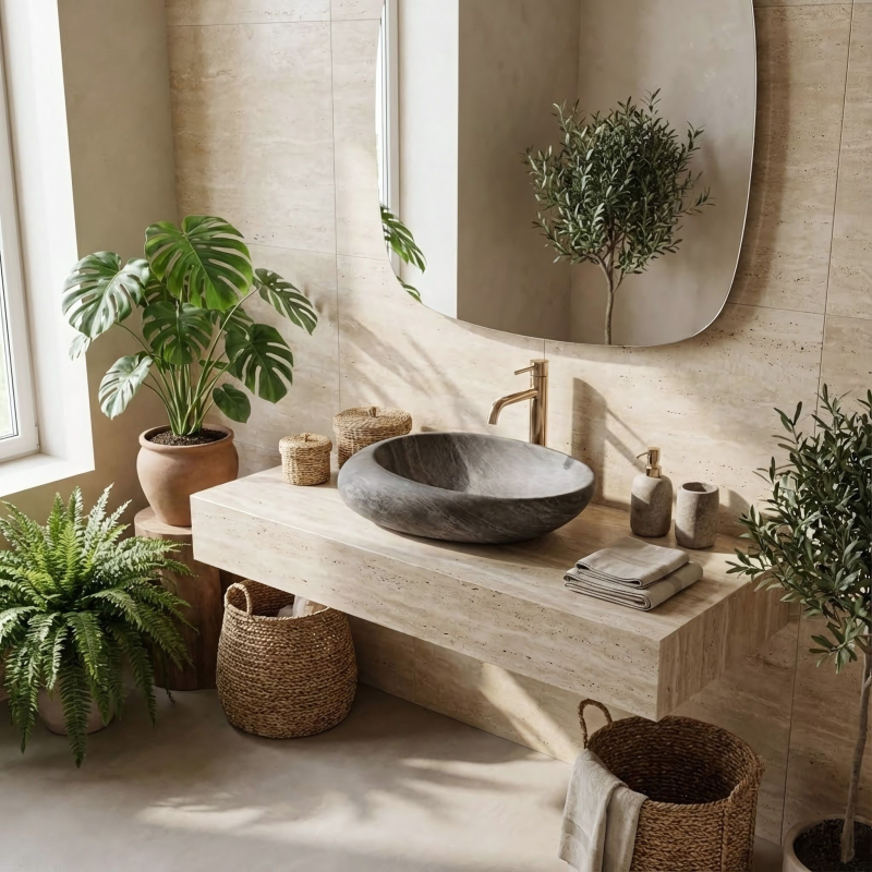 Moderní série umyvadel imitující kámen. Díky technice, kterou byla vyrobena vrchní vrstva umyvadla, má každý ekzemplář jedinečný a jedinečný vzor. Tento efekt imituje přírodní kámen. Ergonomický tvar mísy umožňuje vodě volně odtékat. Umyvadlo lze namontovat na desku nebo skříňku. K tomuto umyvadlu nabízíme perfektní vysoké baterie a sifony v mnoha barvách.