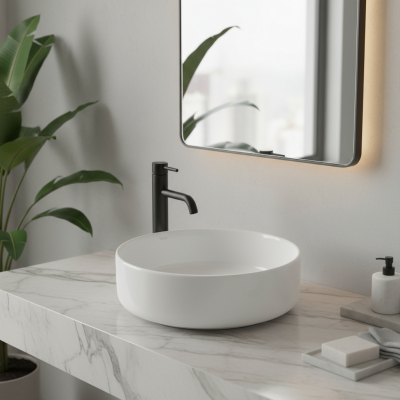 Představujeme Vám moderní nové umyvadlo na desku série Rea Sami. Umyvadlo kulatého tvaru je vyrobeno z materiálů nejvyšší kvality a jeho vlastnosti splní veškeré vaše požadavky. Tento model ocení především zákazník, hledající nejen funkční, ale také estetické řešení. Umyvadlo je určeno k montáži na desku, ale je možné ho kombinovat i se skřínkou. Umyvadlo je vyrobeno v bílém provedení a díky speciální fázi výroby se snadno čistí a je velice odolné. Umyvadlo v bílém lesklém provedení se navíc díky speciální fázi výroby snadno čistí a je velice odolné.
