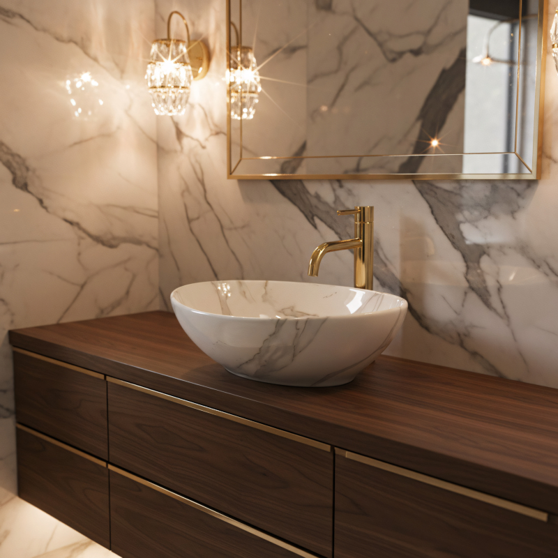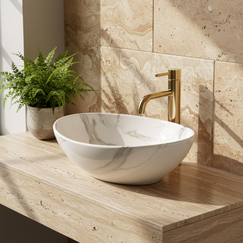 Představujeme Vám moderní nové umyvadlo na desku série Rea Sofia. Umyvadlo oválného tvaru je vyrobeno z materiálů nejvyšší kvality a jeho vlastnosti splní veškeré vaše požadavky. Tento model je vhodný především pro zákazníka, hledajícího funkční, ale hlavně jednoduché řešení. Umyvadlo je určeno k montáži na desku, ale je možné ho kombinovat i se skřínkou. Umyvadlo v bílém lesklém provedení s mramorovým nádechem se navíc díky speciální fázi výroby snadno čistí a je velice odolné. Speciální povrchová úprava dává umyvadlům jedinečný mramorový vzor.