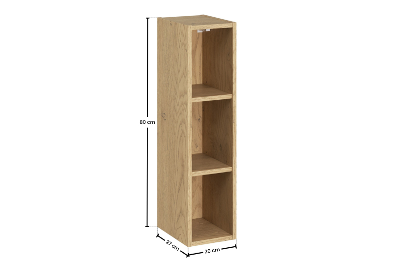 Ten regał górny o szerokości 20 cm to subtelny akcent, który wprowadza naturalne ciepło i ład do minimalistycznych wnętrz. Mebel został starannie wykończony w dekorze Dąb Cremona, wiernie odwzorowującym piękno naturalnego drewna i tworzącym przytulną atmosferę. Konstrukcja z trwałej płyty laminowanej zapewnia solidność oraz długotrwałe użytkowanie. Dzięki pełnej kompatybilności z kolekcją Dalia Cashmere możesz swobodnie kreować przestrzeń, dodając jej wyrazistego charakteru i spójnego stylu.