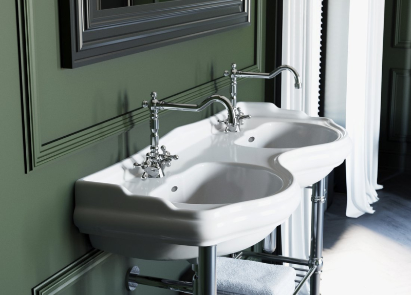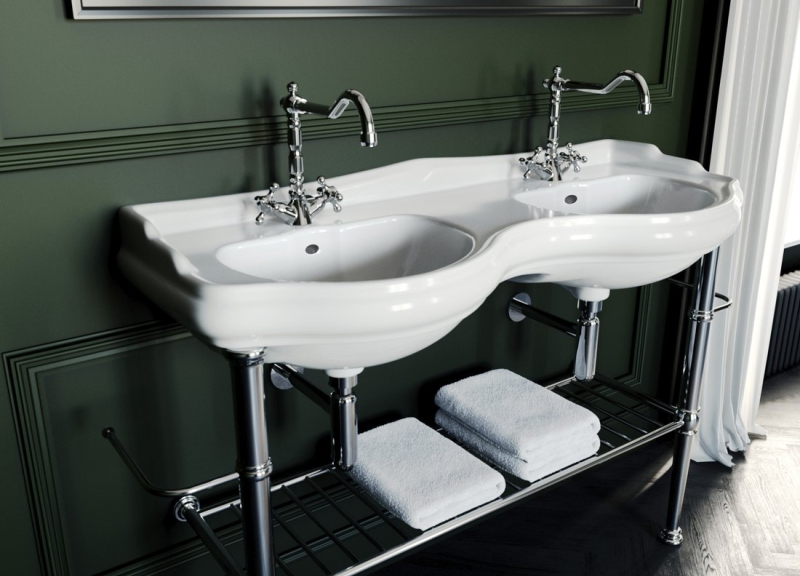 RETRO keramické dvojumyvadlo 120cm, bílá