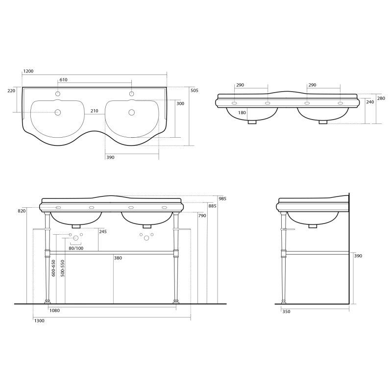 RETRO konstrukce pro dvojumyvadlo 120cm s poličkou, chrom