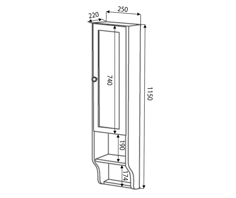 RETRO skříňka k zrcadlu 25x115x20cm, levá, buk 1700