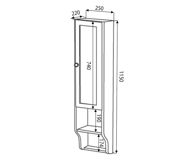 RETRO skříňka k zrcadlu 25x115x20cm, levá, starobílá 1706