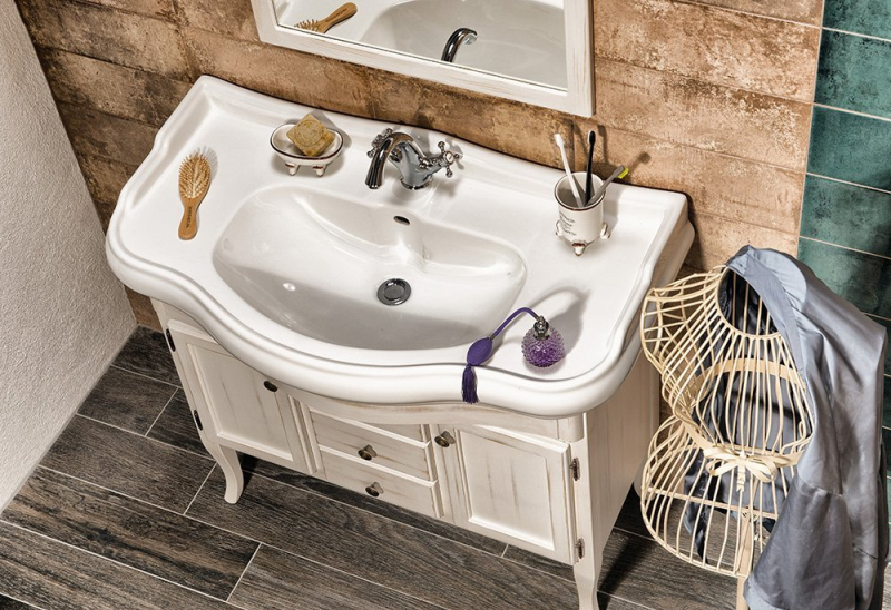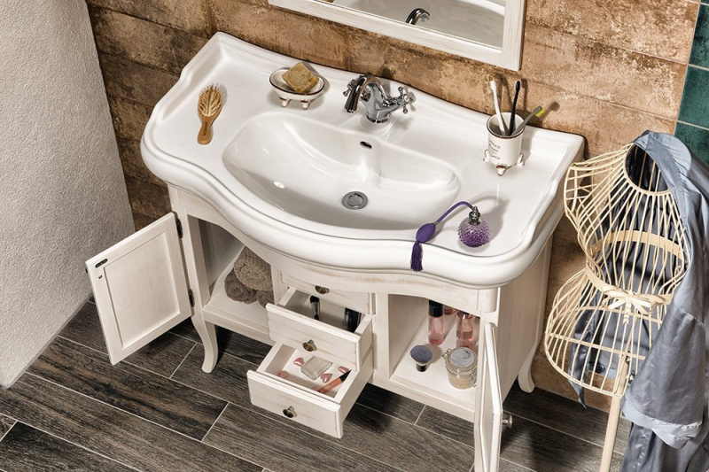 RETRO umyvadlová skříňka 89x80x48cm, starobílá 1621