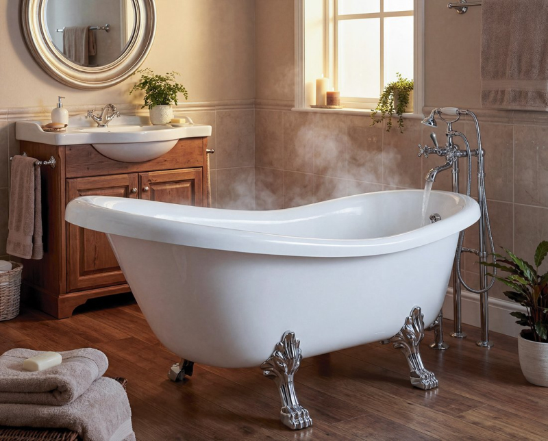 RETRO volně stojící vana 157x76,5x73cm, bílá, nohy chrom