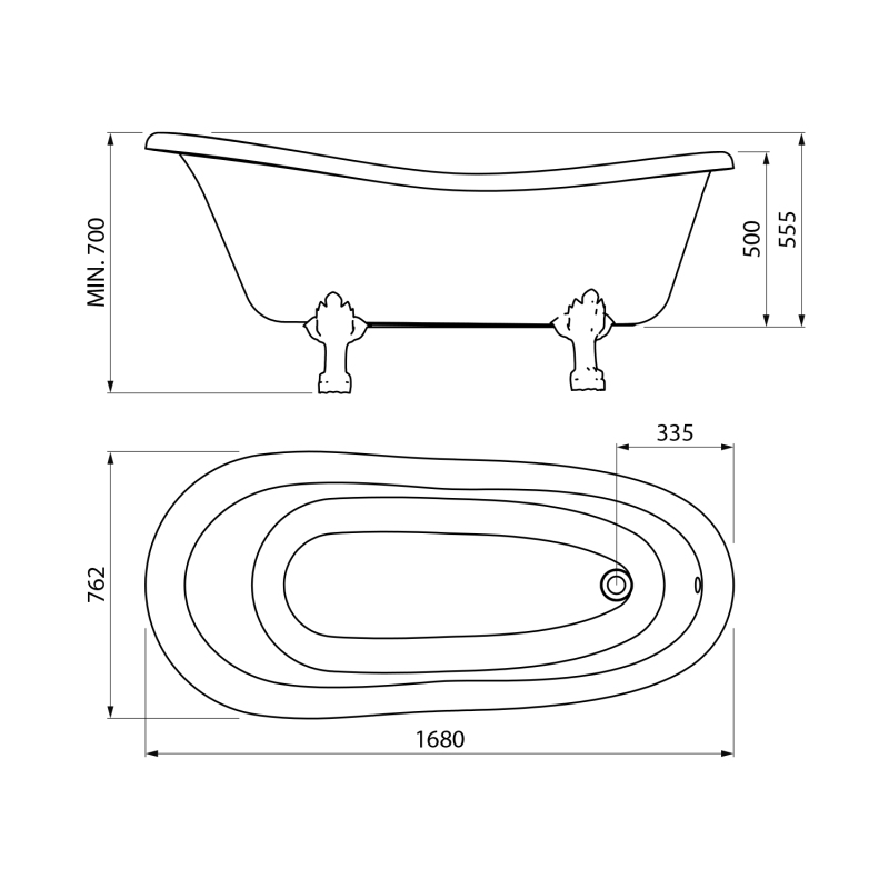 RETRO volně stojící vana 168x76,2x70cm, bílá