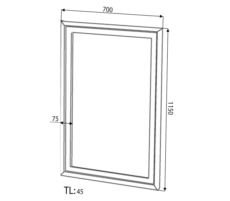 RETRO zrcadlo v dřevěném rámu 700x1150mm, starobílá 1686