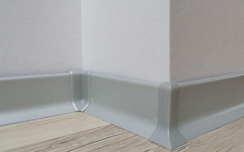 Vnější roh k PVC soklu v barvě stříbrošedá, výška 40 mm. V balení 2 ks.