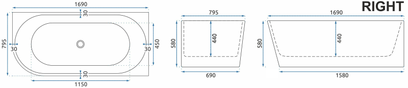 REA Rohová akrylová vana SYDNEY BELLANTO RIGHT 170cm KPL-W7900