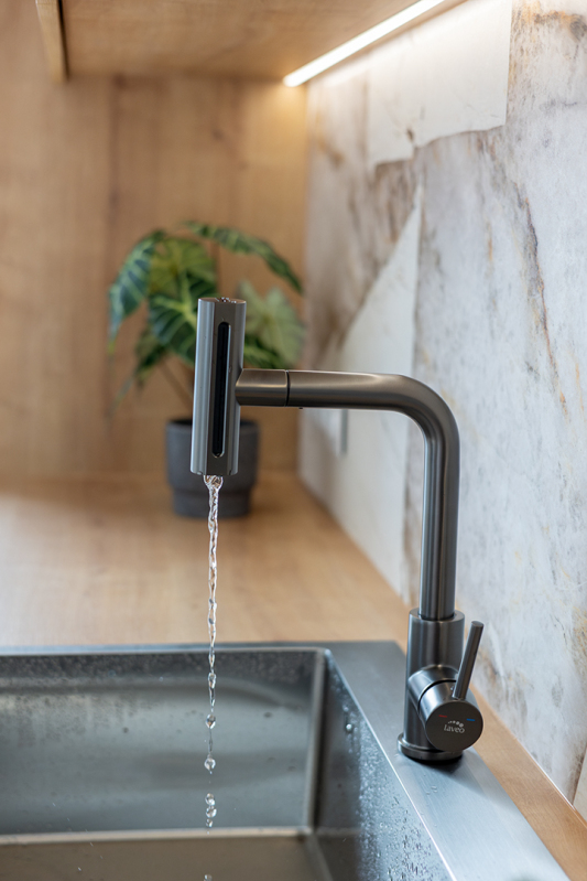 Laveo ROTARO stojánková dřezová baterie s výsuvným multifunkčním výtokem BLR_969D